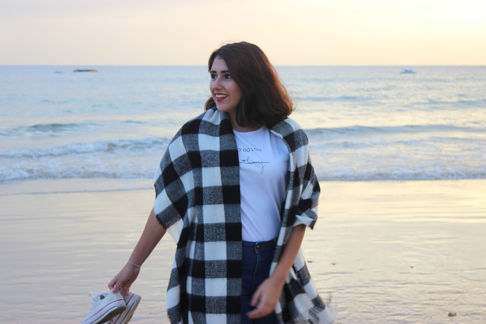 Relativamente à roupa, já sabem que é o mais simples e confortável possível, principalmente naquele dia que foi mesmo para dar um passeio relaxado. A típica t-shirt com uma frase, as mom jeans e uma manta ou lenço, como preferirem chamar. Apesar de as All Star apareceram nas fotografias, não tirei nenhuma com as mesmas nos pés pois praia nesta altura para mim é para andar descalça, sem dúvida. Fico a sentir-me tão bem! É a minha melhor terapia!